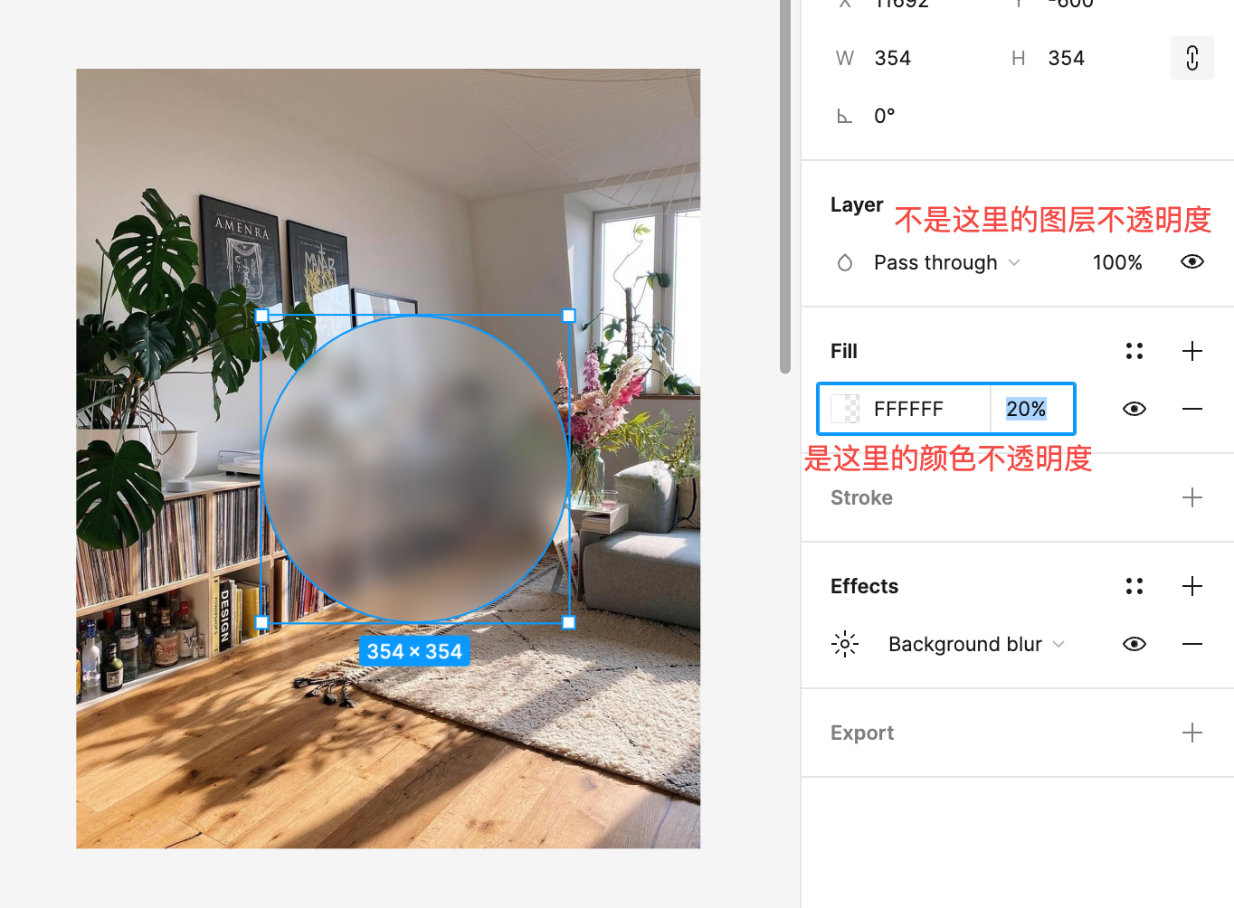 背景模糊需要该图层是半透明的,你可以调整一下的图层的颜色透明度(注意是调整颜色的透明度而不是图层的透明度)。