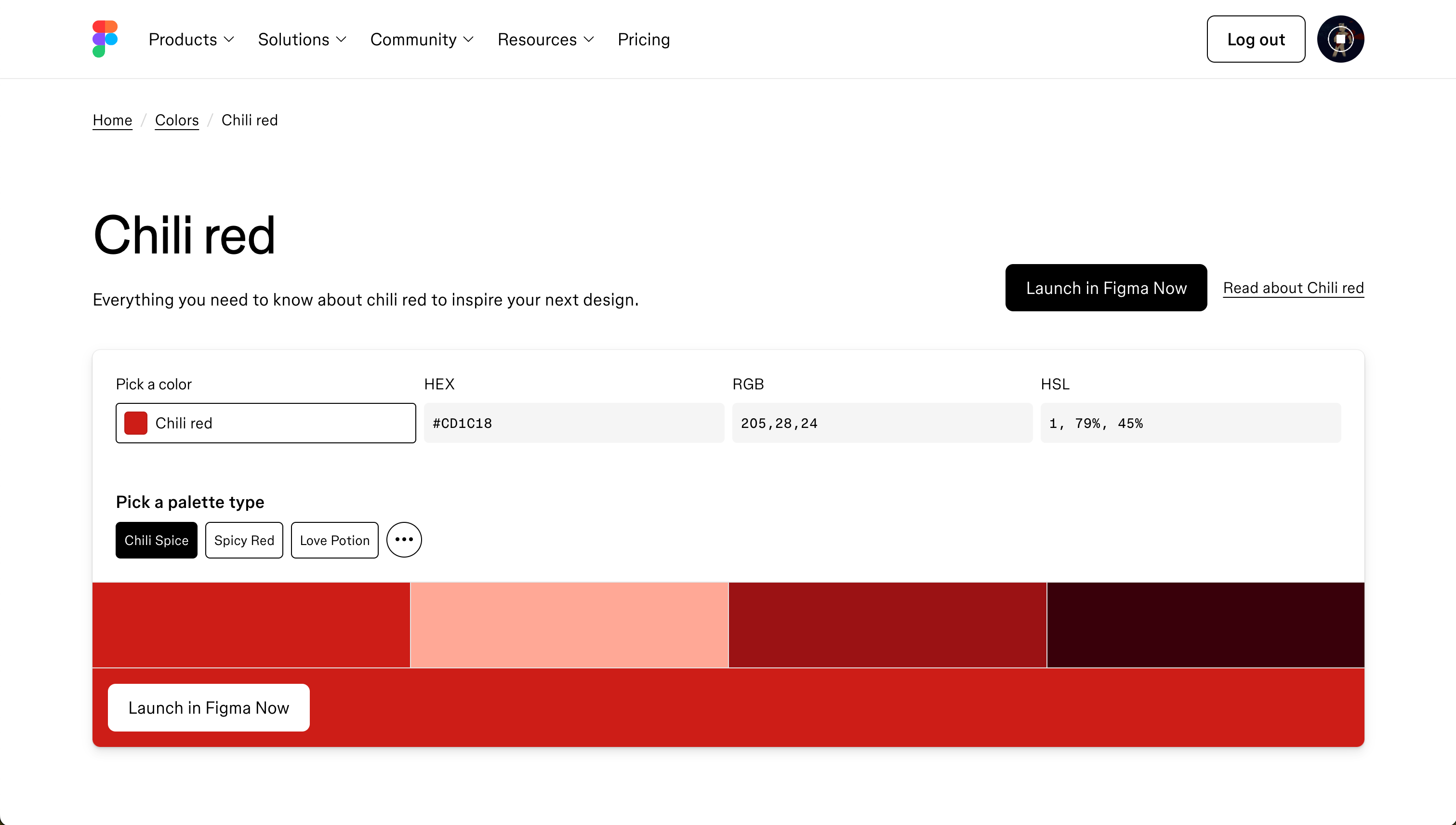 Color Meanings 🔗 https://www.figma.com/colors/ Figma 官方做的颜色工具,可以在里面查看各种颜色及其含义、颜色搭配等,还可以一键导入 Figma 作为变量直接使用。